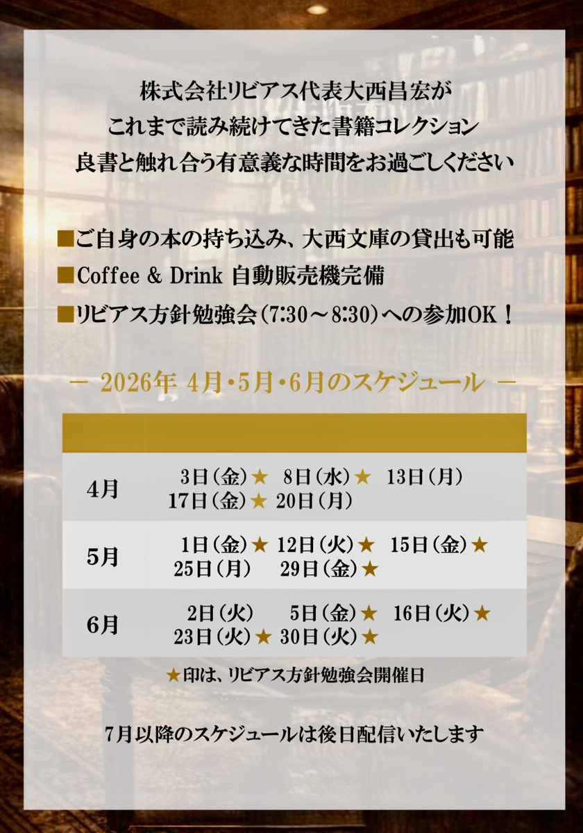 さらに、開放日程の中にはリビアスの方針勉強会に参加いただける